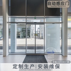 • 電動推拉門人臉識別感應玻璃門定制側開電子橫移門門禁自動門安裝